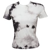 1.Tričko namočíme a vyždímané vyvážeme provázkem. Počítáme již s tím, že do neobarveného místa později natiskneme motiv. Podle návodu si připravíme barvicí lázeň, obvykle s přídavkem soli. Tričko obarvíme, vymácháme a ustálíme 30 minut ve vodě s trochou octa. Z pěnové gumy si vystříhneme tiskátko jednoduchého tvaru.